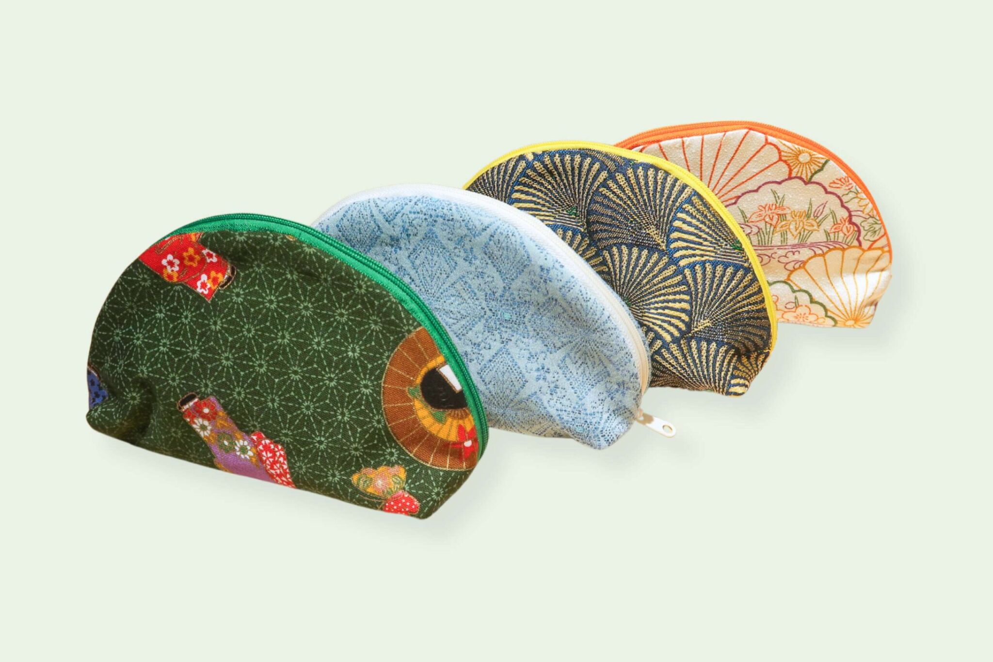 Comme toutes les créations d'Odile Van Den Woldenberg, cette pochette à zip est fabriquée à partir d’anciens tissus japonais.