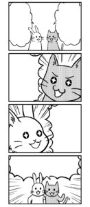 Les yonkoma sont des bandes dessinées en 4 cases composées d’une structure narrative simple qui marchent souvent sur un ressort comique, on en trouve souvent en bonus de fin de chapitre dans les mangas.