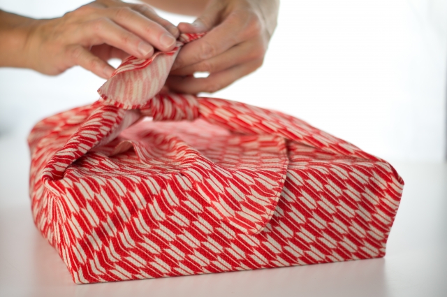 Le furoshiki est un carré de tissu présent depuis des siècles dans la culture japonaise. Selon la manière dont on le plie, le furoshiki peut servir de sac ou d'emballage à des objets de formes diverses.