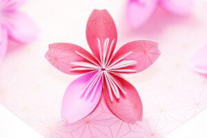 今月のテーマ : 春の訪れを祝って桜の花と蝶々を折ります。