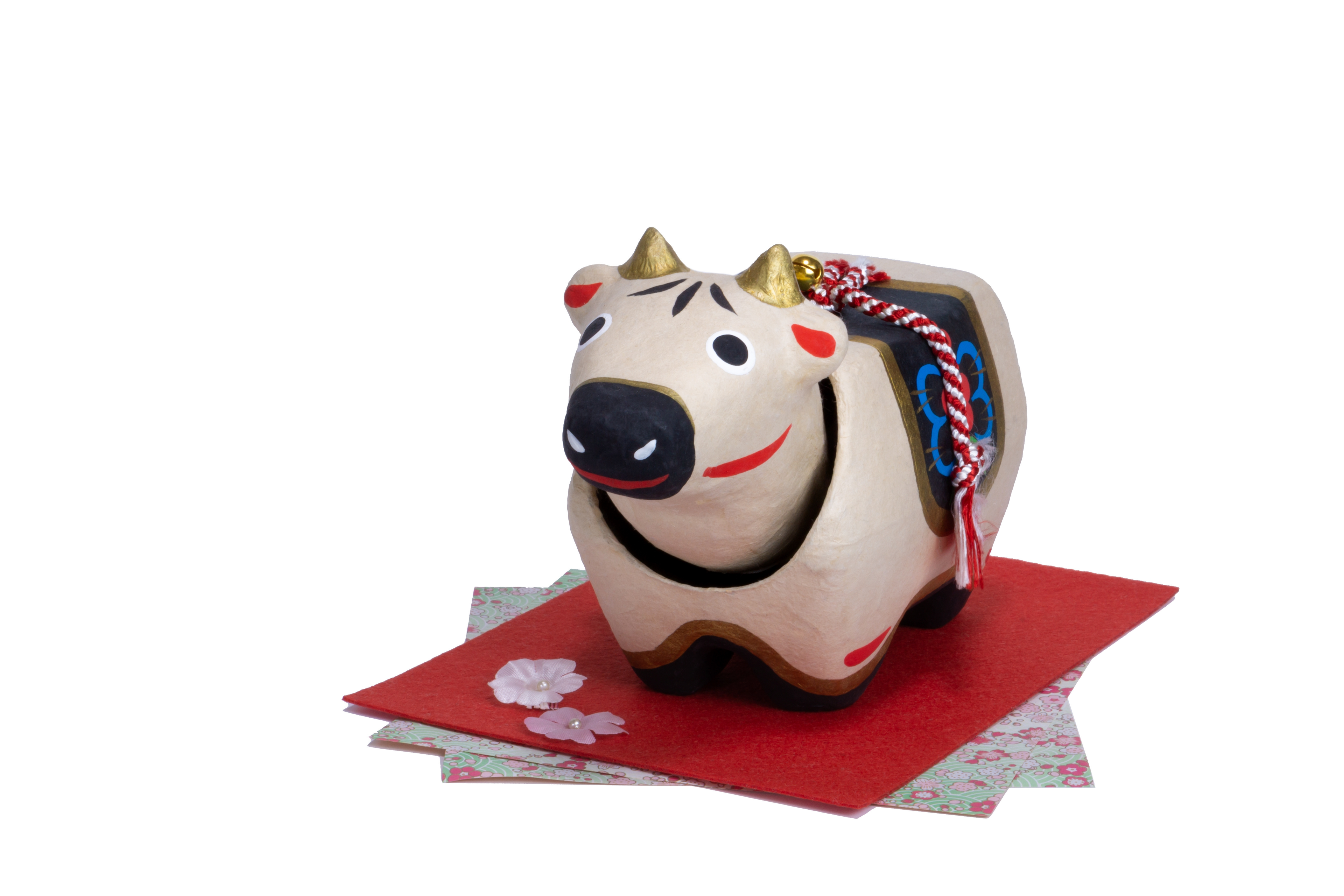 Figurine en papier japonais mâché (hariko) peint selon les techniques de la peinture traditionnelle japonaise. Les motifs peuvent varier (divinités, porte bonheur, animaux, personnages, etc.).