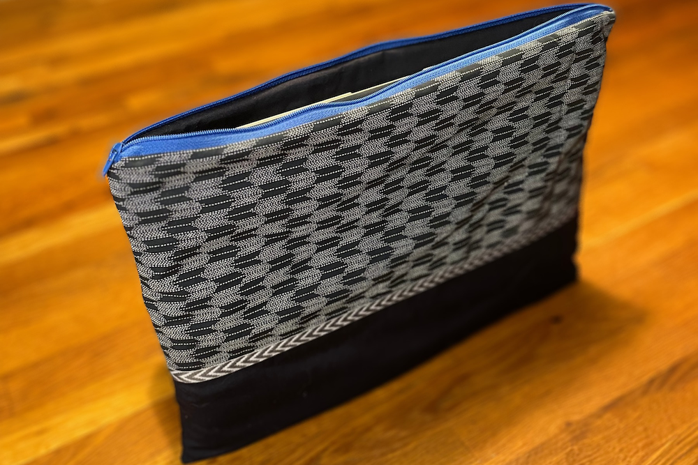 Comme toutes les créations d'Odile Van Den Woldenberg, cette housse (pour ordinateur) est fabriquée à partir de tissus d'ancien kimono japonais.