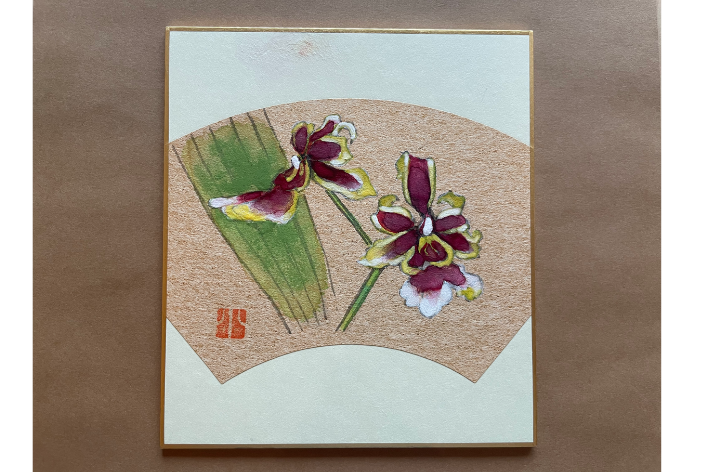 La peinture traditionnelle japonaise NIHONGA trouve son origine en Chine au 8' siècle sous l'influence du boudhisme. L'évocation de la religion et l'admiration de la Nature en général (paysages, fleurs et animaux), sont les thèmes favoris développés par cet art. Elle se caractérise par l'utilisation de matériaux naturels, tel que les poudres de minéraux,(pierre précieux), Iwa enogu, et de coquillages (Gofun), de pigments de terre, l'encre de chine, la feuille d'or et d'argent, de papier japonais, et l'utilisation de pinceaux spéciaux.