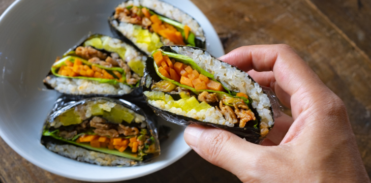 L’ONIGIRAZU, cet onigiri moderne, est un plat japonais qui mêle l’onigiri (boulette de riz japonaise) et le sandwich que nous connaissons. En effet, pas de pain ici mais du riz japonais garni de tout ce qui vous fait plaisir ! Ce plat populaire au Japon a de nombreux avantages : il est sain et convient parfaitement pour des pique-niques car vous pouvez le glisser dans votre bento (plateau repas japonais). En plus, vous pouvez le customiser et le décliner à l’infini en fonction de vos goûts et de vos envies du moment.
