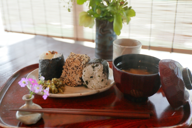 - Onigiri (boulettes de riz dans une feuille d'algue "nori") en plusieurs saveurs typiques