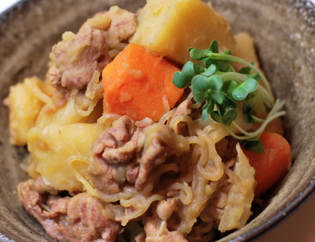 Nikujaga (ragoût de boeuf aux oignons et pommes de terre), riz et Dorayaki (fameux dessert japonais)