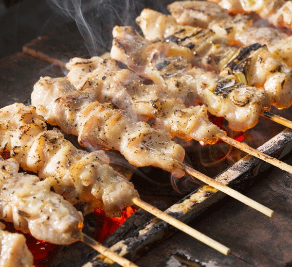 Gyôza (raviolis japonais) et Yakitori (brochettes de poulet à la japonaise)