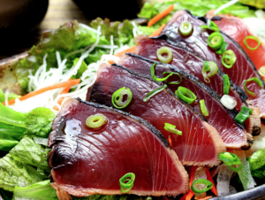 - Tataki (mi-cuit) de bonito style "Tosa-zukuri"