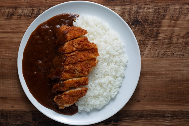 Menu : Curry japonais accompagné de Chicken roll-katsu (rouleau de poulet pané)