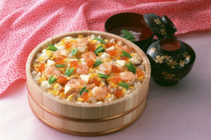 Le Chirashi, c'est un sushi festif, divers délices sur le lit de riz assaisonné, tradition de le manger le 3 pour une occasion de fêter. En plus de cela, vous allez apprendre le AKADASHI, soupe au miso rouge.