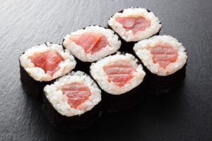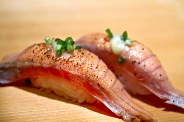 Menu du jour : Sushi de saumon aburi (cuit juste surface) et maki tekka