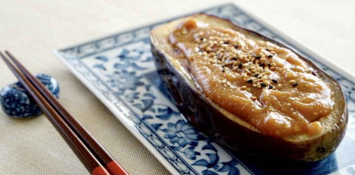 Plat sur le sujet de mariage de miso et d'aubergine : Aubergine glacée du MISO caramélisé