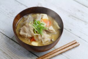 Le Miso est un mélange semi-solide, fermenté et arrivé à maturation, de fèves de soja bouillies (ou cuites à la vapeur), de sel et de kôji (un type de moisissure cultivée dans un milieu de riz cuit à la vapeur, de blé ou de soja).