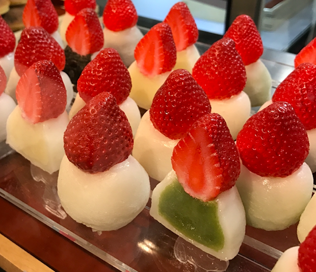 Pâtisserie du jour : Mochi garni au chocolat au matcha avec de la fraise