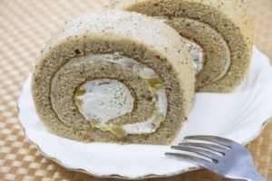 Pâtisserie du jour : Roll cake aux haricots rouges et yuzu et daifuku (mochi garni de pâte de haricot rouge) aux marrons