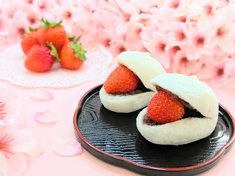 Pâtisserie du jour : Quatre-quart au yuzu/ ichigo daifuku (mochi garni de la pâte de haricots rouges) à la fraise
