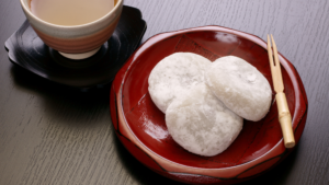 Pâtisserie du jour : Cheese cake aux sésames noirs et Daifuku Mochi au Yuzu