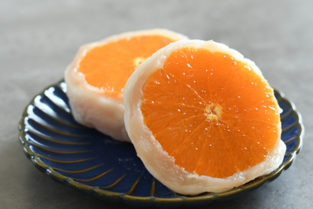 Pâtisserie du jour : Mikan daifuku (mochi garni de clémentine et de pâte de haricots) et cheesecake japonais