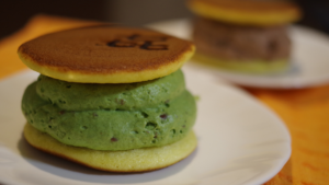 Pâtisserie du jour : Dorayaki aux différentes farces (pâte de haricots rouges – crème au matcha – crème et haricots rouges) / panna cotta aux sésames noires