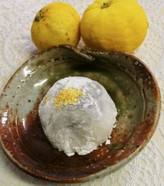 Pâtisserie du jour: Matcha gâteau au chocolat et Yuzu-daifuku (moche avec pâte d'haricots blanc au yuzu).