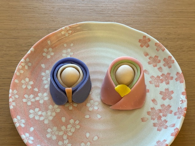 今回のアトリエでは、練り切り餡の作り方を学んだ後、雛祭りをテーマにした雛人形と桃の花をお作り頂きます。アトリエの最後のご試食の際に、ほうじ茶、玄米茶、抹茶をご用意しております。