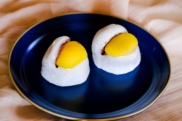 Découvrez les kuri daifuku. Cette délicieuse création de la pâtisserie japonaise marie l’onctuosité du daifuku traditionnel avec la saveur réconfortante des marrons, ou kuri. Cette gourmandise délicate offre une expérience sensorielle unique. Elle allie douceur moelleuse du riz gluant à la richesse des marrons sucrés.