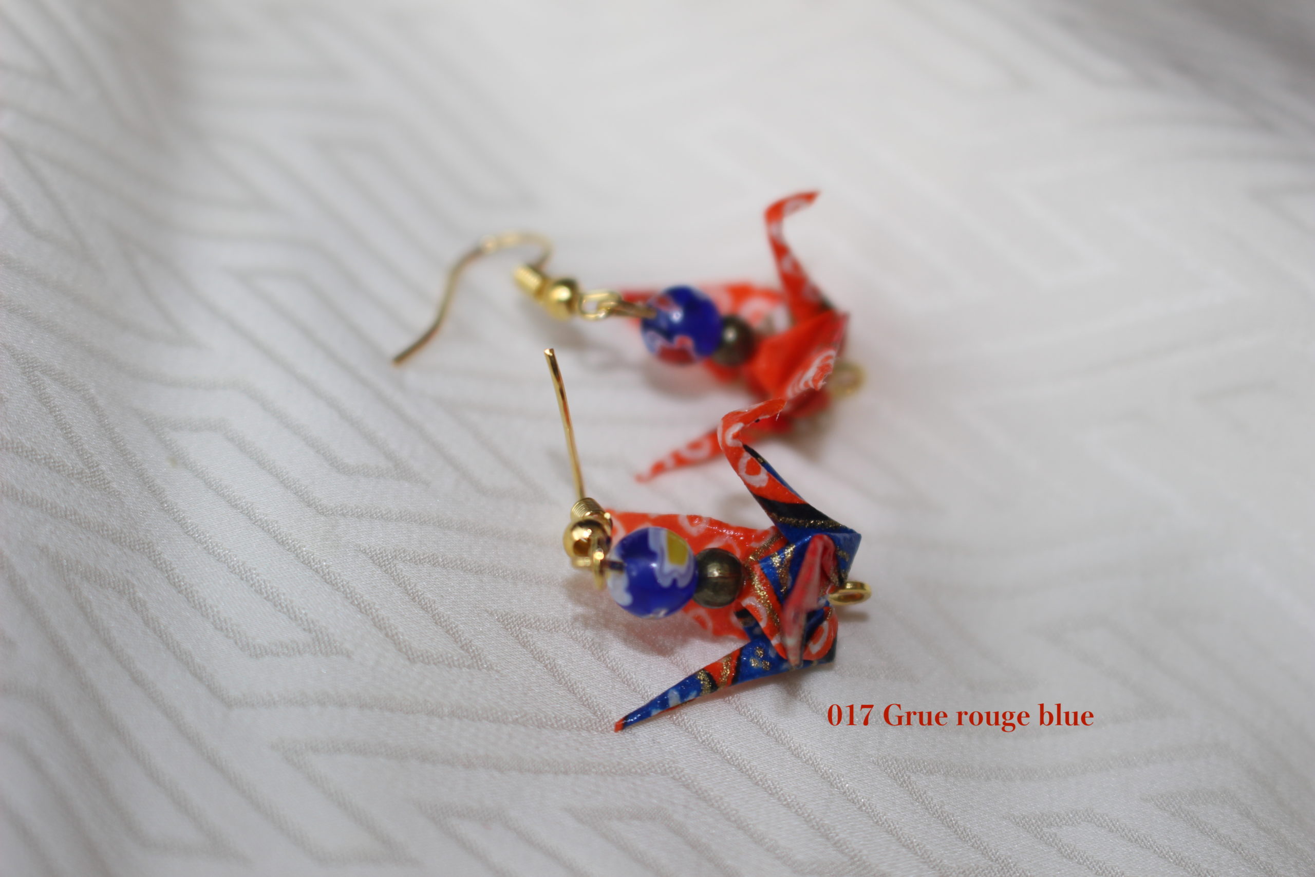 Boucles d'oreilles "Grue bleue et rouge"