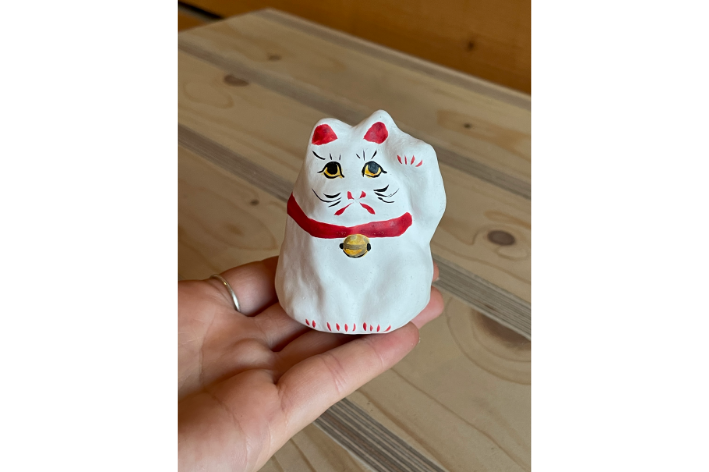 Fabriqué avec du papier mâché japonais, de la peinture de coquillage (ganryo) pour le blanc immaculé de la figurine et de la peinture japonaise traditionnelle (gofun) pour ses belles couleurs rouges, or, noir ...
