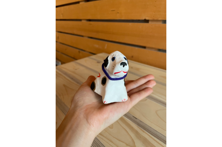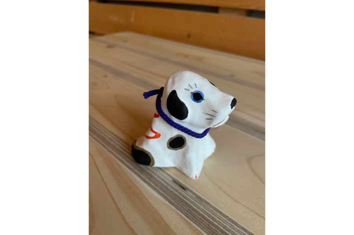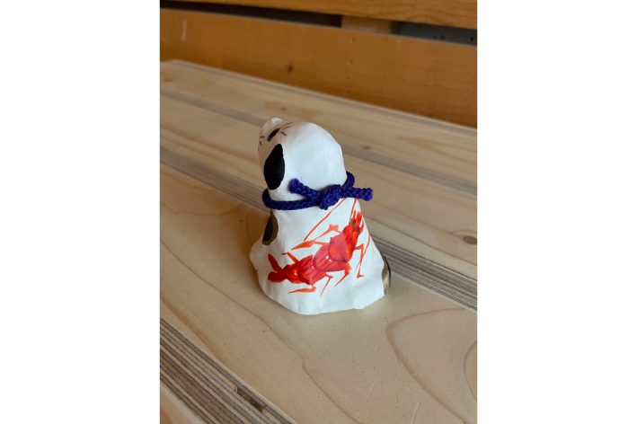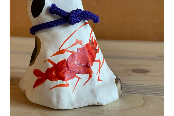 La figurine EBI-INU 海老犬 représente un chien portant le motif d’une ise ebi (grande langouste ise).