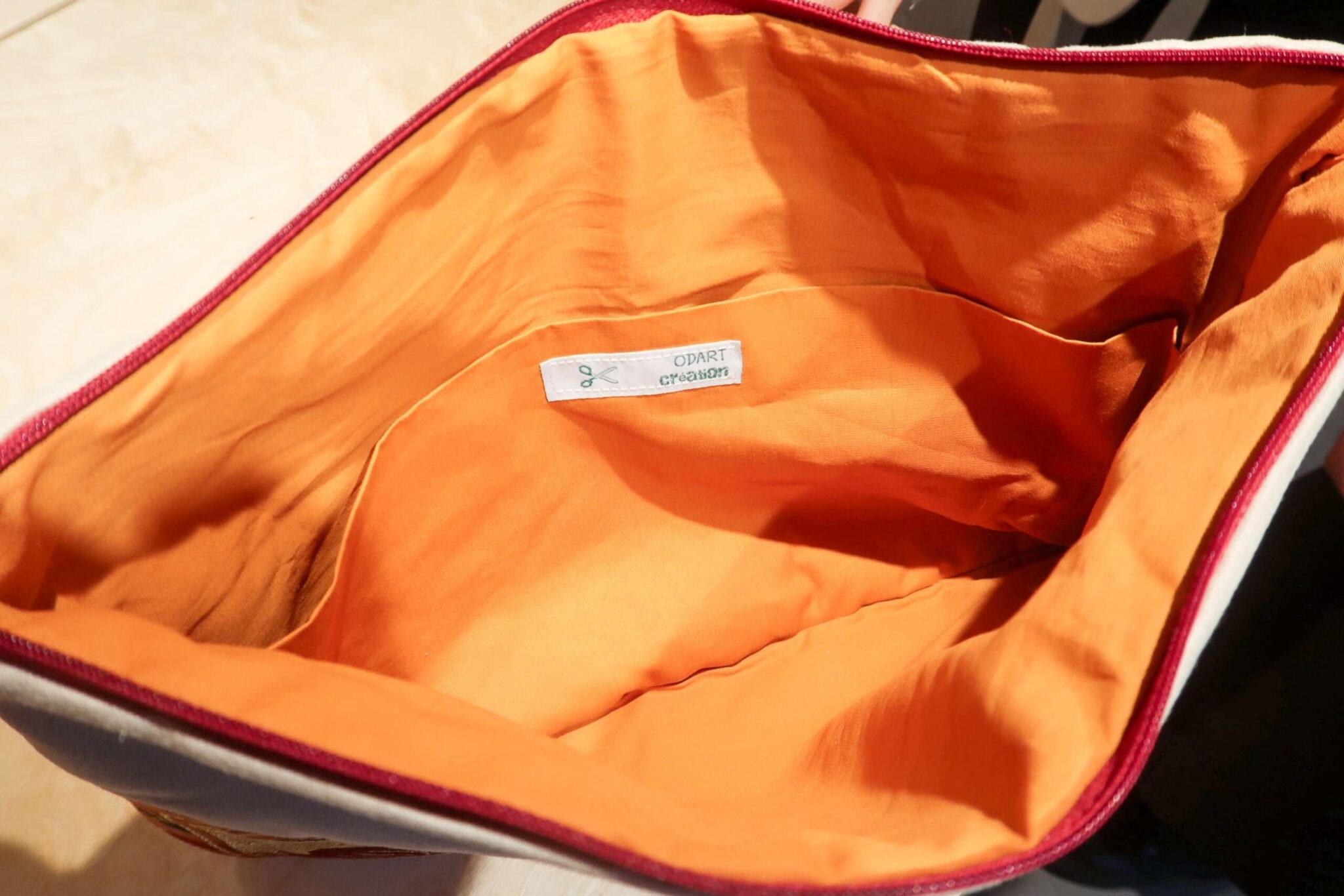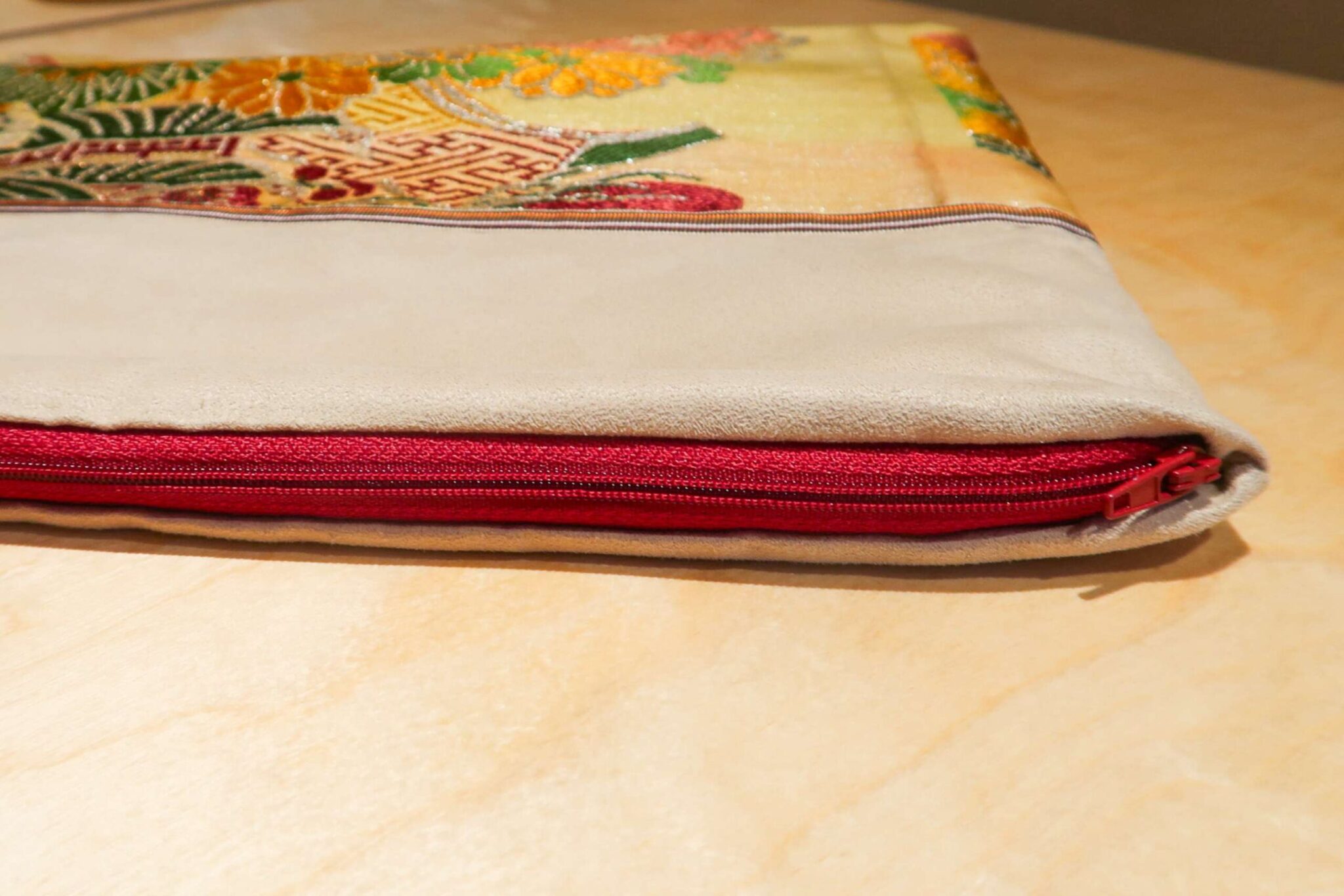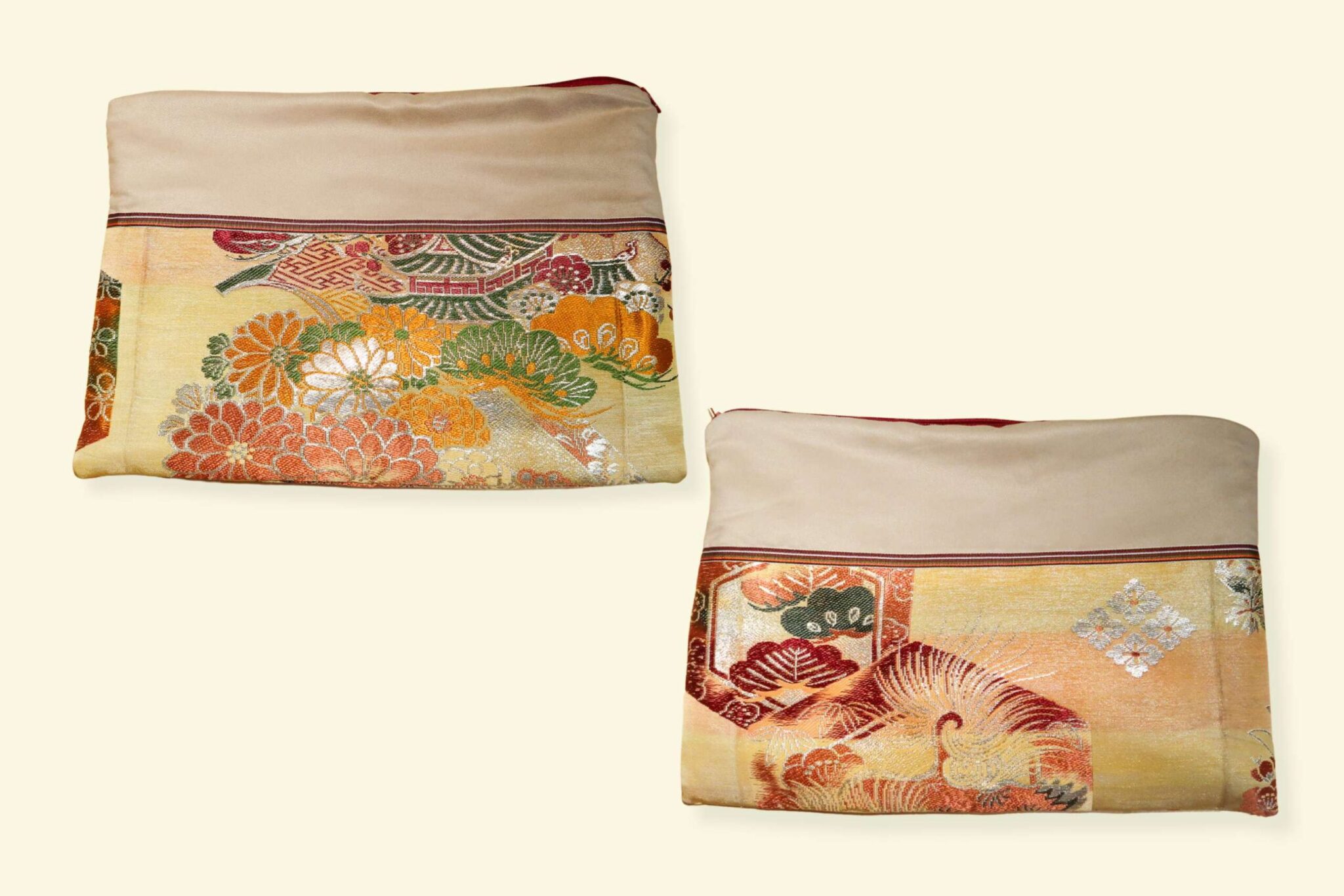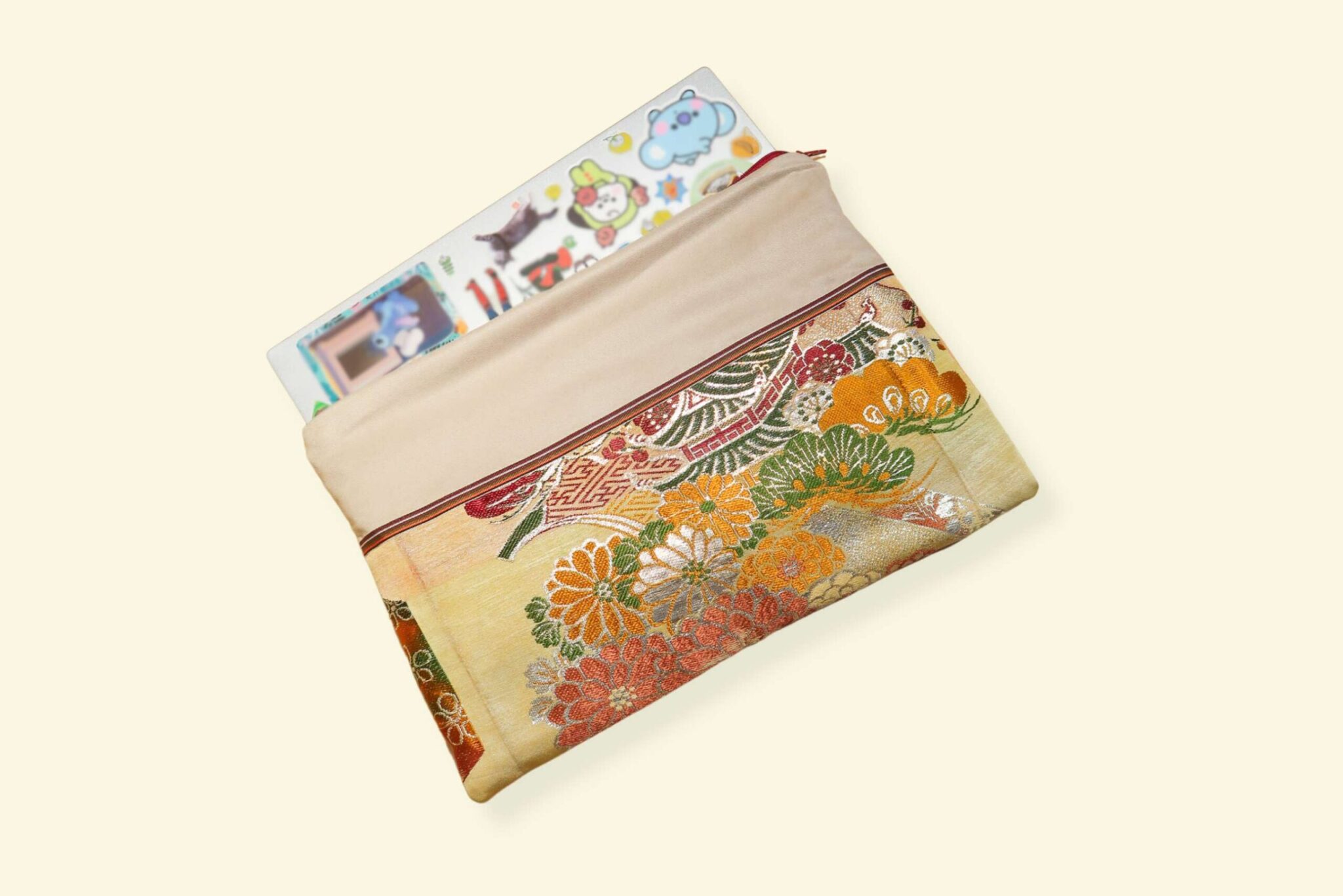 Comme toutes les créations d’Odile Van Den Woldenberg, cette housse (pour ordinateur) est fabriquée à partir de tissus d’ancien kimono japonais.