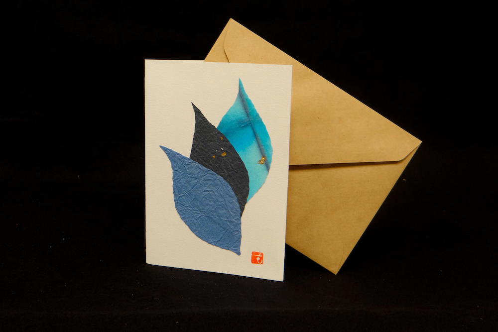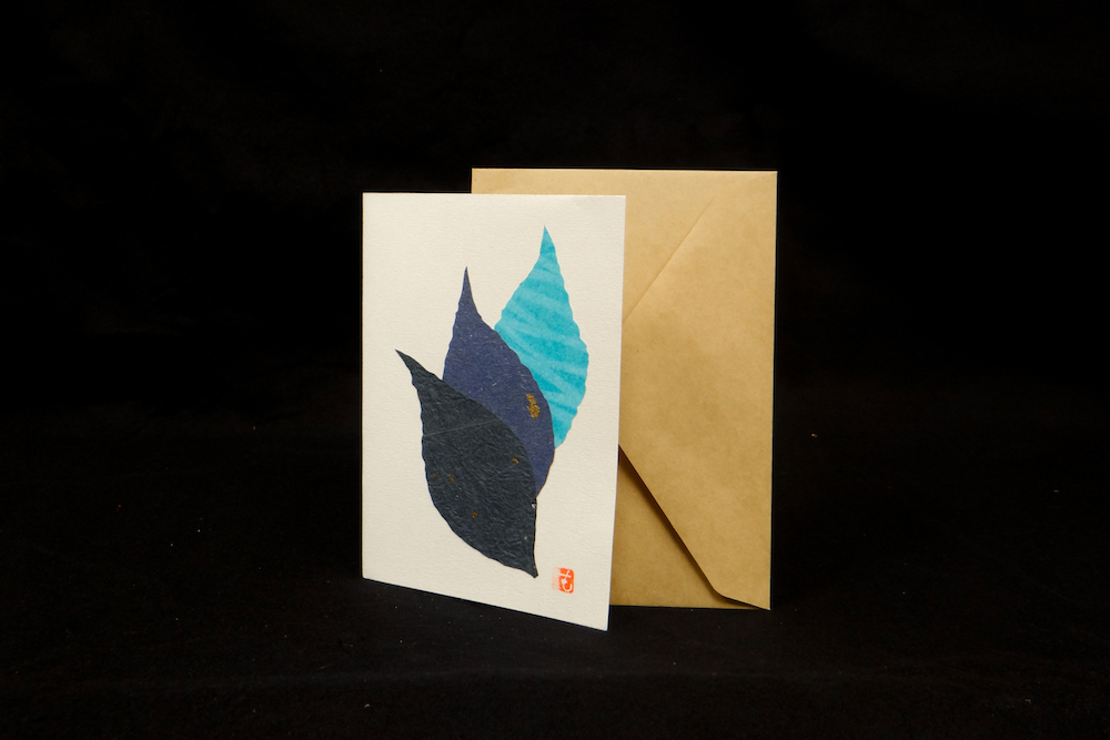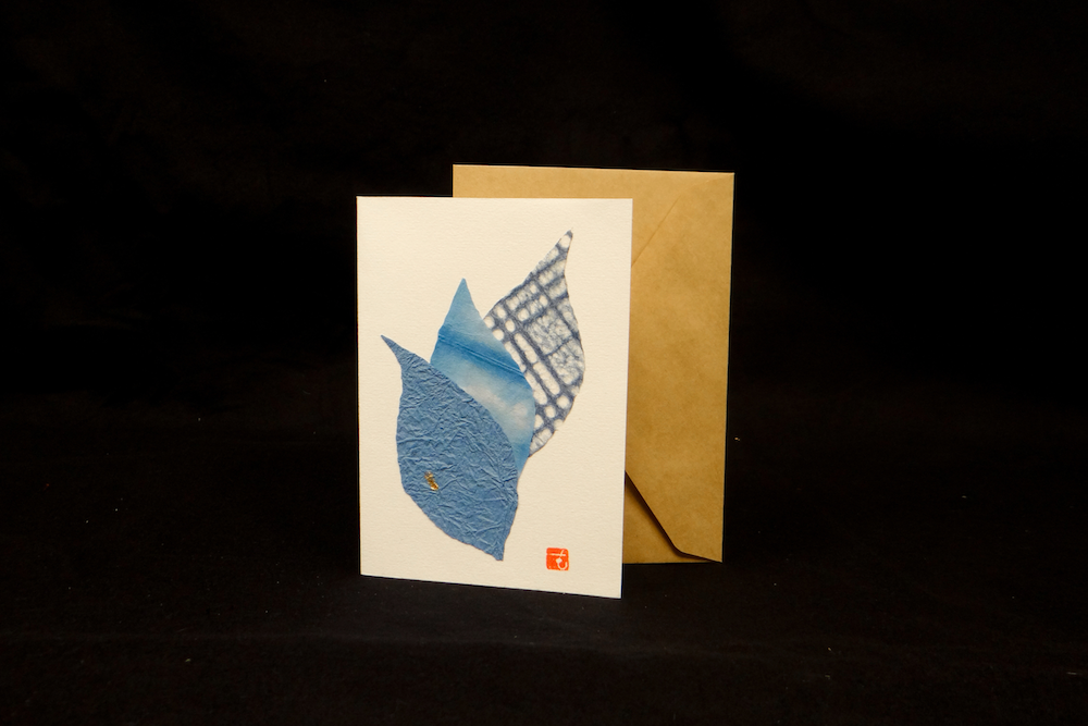 Ce set « Feuilles bleues » est composé de 3 cartes originales avec motifs de feuilles bleues en déclinaison de papiers japonais.