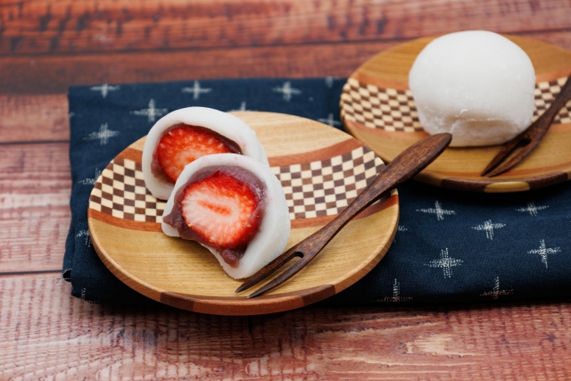Le Ichigo Daifuku consiste à fourrer le mochi d’une délicieuse fraise fraîche. C’est donc une version plus fruitée du traditionnel daifuku mochi. Aussi, elle est assez récente. L’ichigo daifuku est en fait né de la passion dont s’est pris le Japon pour la fraise dans les années 1960. Sa culture à grande échelle a alors commencé avec comme épicentre la préfecture de Tochigi, au nord de Tôkyô. Puis, dans les années 1980, on a même inventé une variété japonaise spéciale : la Nyohô. Cette dernière pouvant être récoltée en décembre, cela explique notamment pourquoi le gâteau de Noël traditionnel au Japon soit un fraisier …