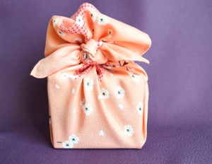 Le furoshiki est un carré de tissus japonais qui existe au Japon depuis l’antiquité. Les Japonais de cette époque l’utilisaient à l’origine lorsqu’ils se rendaient aux bains. À l’époque d’Edo, le furoshiki se développe et est de plus en en plus utilisé. On l’utilise pour emballer et transporter des objets de tailles et de formes diverses. De plus, l’art du furoshiki allie le côté pratique à l’esthétique de par les magnifiques tissus utilisés. Il répond donc à tous les usages : transport d’objets, pique-nique, échange de cadeaux…