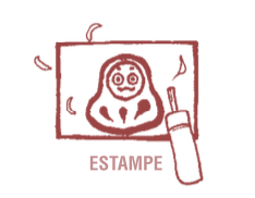 Dessin obtenu à partir d’une gravure sur bois et reproduit sur papier japonais, l’estampe japonaise tient son origine des gravures bouddhiques découvertes sur la route de la soie au VIIème siècle.