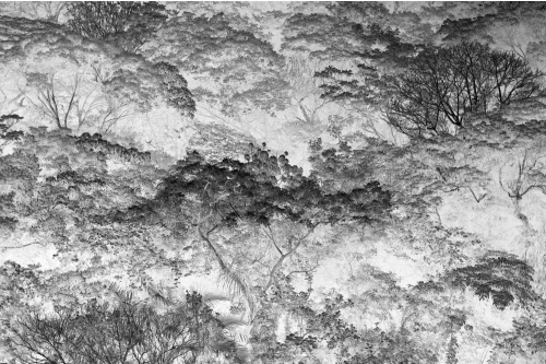 Le regard de Marion Doublet révèle des paysages inversés, où chaque feuille, chaque branche se détache d’un fond solaire, irradiant leurs contours d’une aura phosphorescente. Ses clichés, pris au Japon, sont passés en négatif, transformant l’ombre en lumière et vice-versa. Ce monde à l’envers donne l’impression de motifs graphiques, rappelant tantôt l’estampe, la tapisserie, le papier peint ou l’ornement calligraphié, éminemment décoratif. Ce sont pourtant des vues du monde bien réel, brouillant la frontière entre fiction et documentation, forme d’arboretum rêvé pour une promenade visionnaire. Saisies en plein air, ces images semblent tout droit sorties des archives d’un musée ou des pans d’un paravent. La découpe acérée des détails rappelle le travail millimétré des miniatures, comme si la permutation des lumières mettait enfin à jour le théâtre de la nature.