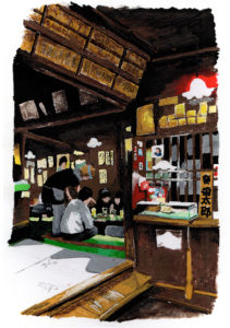 ここから est une invitation à découvrir ou redécouvrir le Japon au travers des illustrations et anecdotes racontées par Maya et Raphaël, le duo derrière l’atelier Goo. Une centaine de petits tableaux reviennent sur leurs souvenirs liés au pays du soleil levant – des souvenirs d’enfance aux hallucinations graphiques, en passant par les plaisirs gustatifs et les paysages apaisants – et dessinent le portrait d’un Japon à la fois intime et universel.