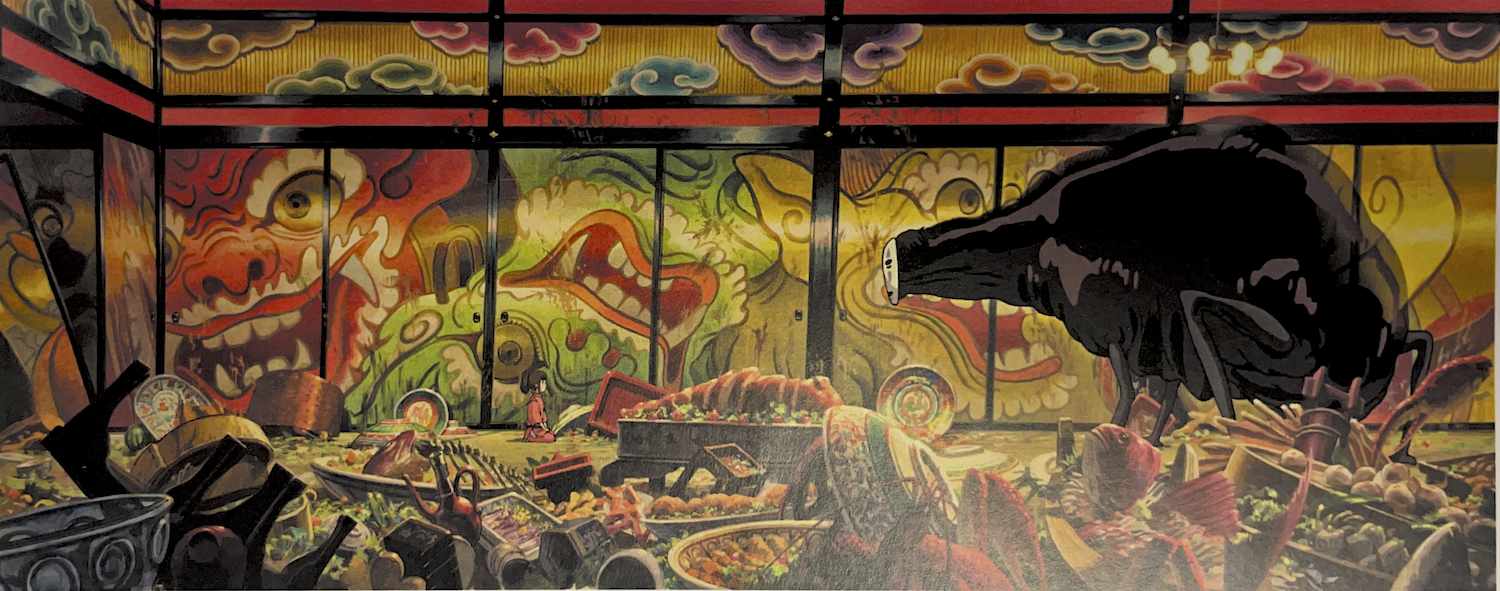 Le banquet du Sans visage (Chihiro presented to No Face), Projet de tapisserie de 3 x 7,50 m.
