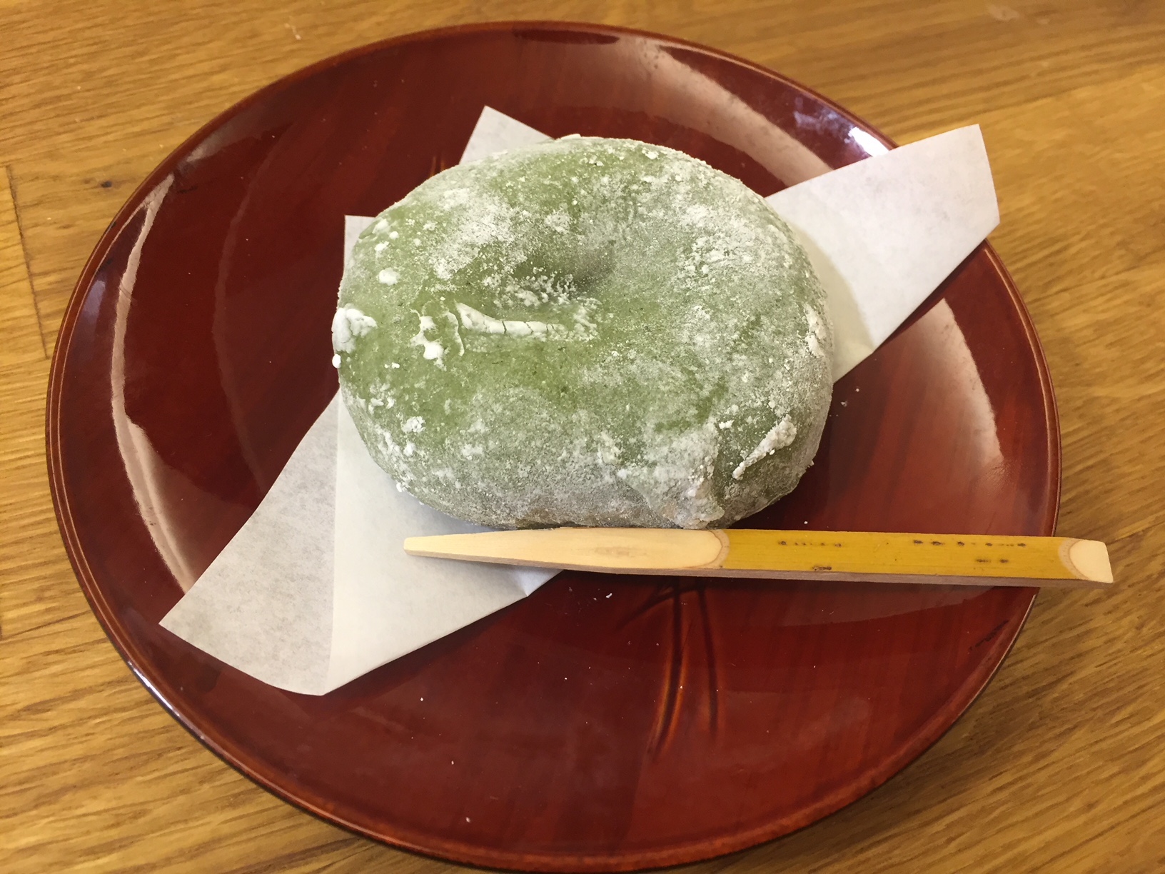 (gâteau de riz gluant traditionnel au matcha, fourré à la pâte de haricots rouges)