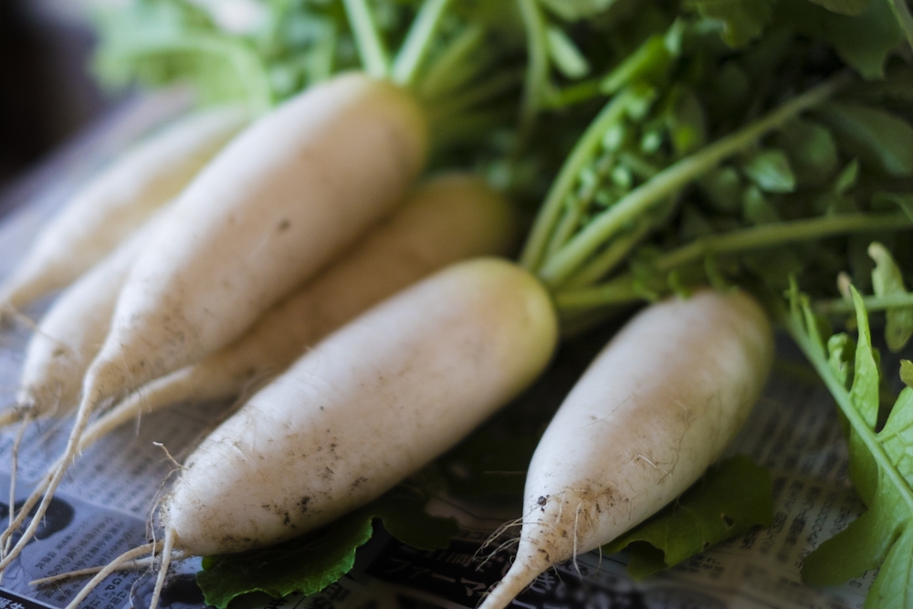 Le daikon est un grand radis blanc. Il peut atteindre parfois jusqu’à 30 kilos en particulier s’il est cultivé sur l’île de Kyûshû (sud du Japon). Ses vertus sur la santé sont nombreuses. On le consomme notamment pour une meilleure digestion.