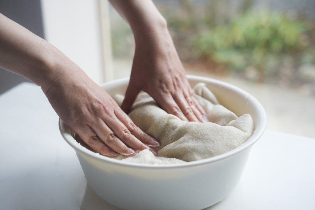 自宅で手洗いができるほど丈夫に仕立てられており、洗うたびにふんわりと膨らみ、まるで肌になじむように育っていきます。気軽に日常に取り入れられる上質さこそが、UTOの考えるラグジュアリーです。