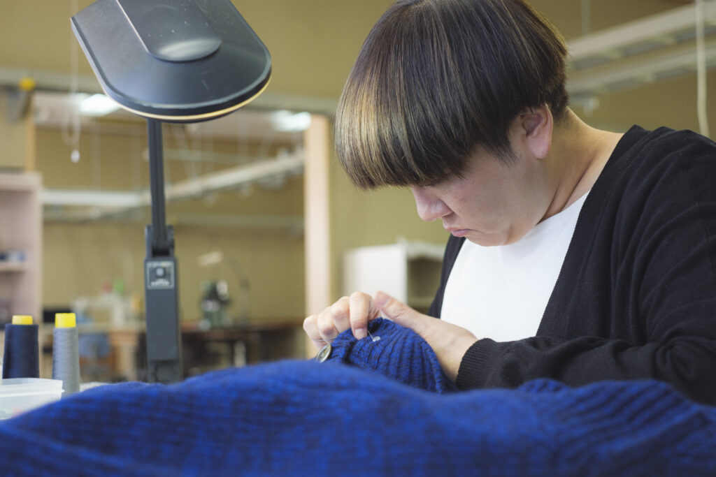 Dans notre usine située à Kitakami, préfecture d’Iwate, nos artisans spécialisés tricotent chaque pièce une à une, sur commande, avec le plus grand soin, loin de toute production de masse.