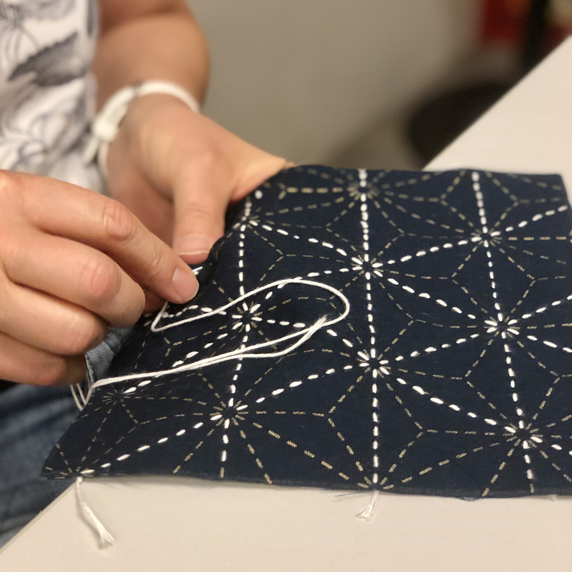 Le sashiko est une technique de broderie japonaise traditionnellement pratiquée avec du fil blanc sur tissus indigo dans le but de renforcer les textiles. C’est une technique assez simple, parfaite pour ceux qui souhaitent découvrir la broderie ! Vous aussi apprenez cette technique avec un motif traditionnel lors de nos ateliers Sashiko.